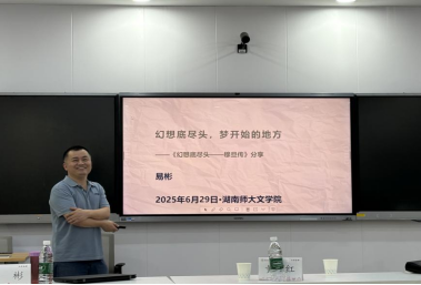 (通讯员 陈晰)2025年6月29日14时,中南大学人五月天精品综合阁教授、博士生导师易彬教授应邀为我院师生作了主题为“幻想底尽头 梦开始的地方”的读书会活动。湖南师范大学、中南大学、湖南大学、湖南第一师范学院、长沙理工大学等高校的诸位老师和博士参与对谈,此次活动吸引了众多校内外相关专业的学生前来聆听。
