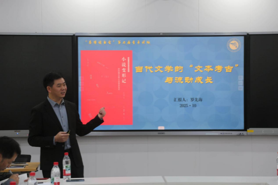 论坛伊始,罗先海老师分享了其新作《小说变形记:新时期长篇小说版本变迁》的创作历程。他指出,当下独立开展新时期长篇小说版本研究已具备较为完备的条件:其一,研究对象具有独特性;其二,研究方法上可融合中国传统古籍校勘与西方现代校勘之长,兼具汇异式校勘与会意式整理的版本汇校方法。