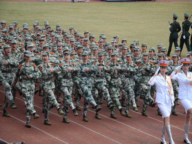 在庄严的国歌中,2017年军训阅兵暨表彰大会正式开始。伴随着分列式进行曲响起,我院方阵在标兵带领下于第二位次出场。我院新生们身着军装、踏着整齐的步伐步入会场,接受检阅,展现他们训练多日的成果。干脆有力的正步意气风发,“风华绝代,文院不败”的口号雄壮响亮,学生们的恢弘气势和飒爽英姿,尽显了我院学子青春飞扬又豪情万丈的精神风貌。