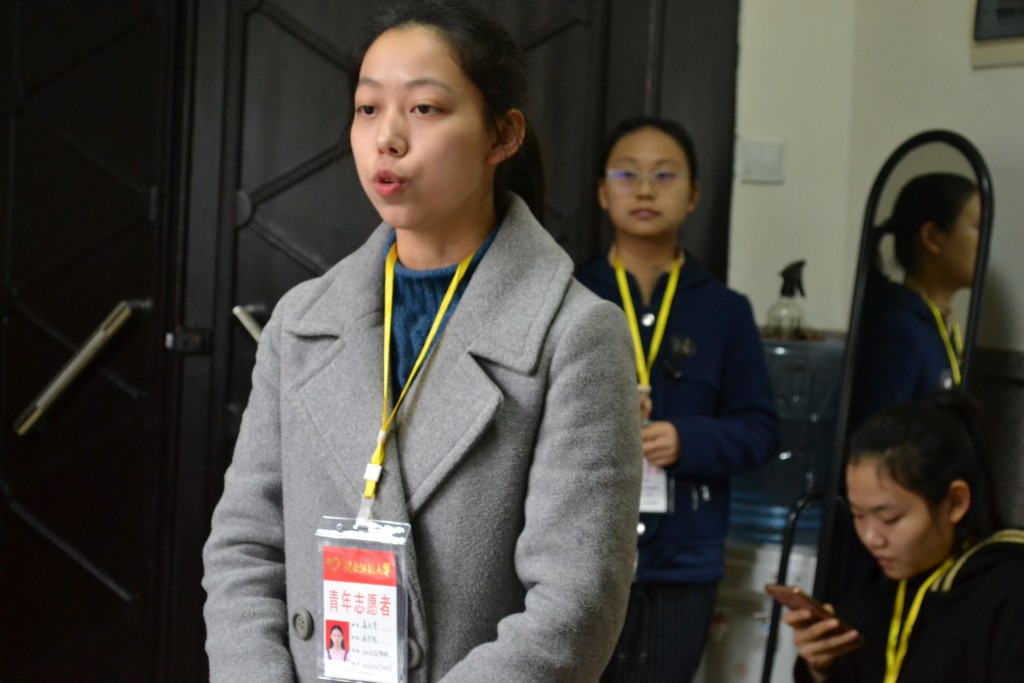 第一轮讲解,志愿者们姿势仪态落落大方,普通话标准,吐字清楚。但因为第一次上岗第一位志愿者稍显紧张,偶有忘词现象。第二位则更加自信,将烈士生平英勇事迹娓娓道来,吸引了一批游客。一轮讲解完毕后,志愿者们回到办公室,负责人提出先让大家自评。来自五月天精品综合阁16级的包金东反思自己“声音不大,吸引不了游客,接下来要更加自信”。自评完毕后负责人一一点评,她指出“大家普遍的问题就是说话声音没有起伏,听起来像是在背书,而且缺少与游客的互动”,说完之后便给大家做了示范。