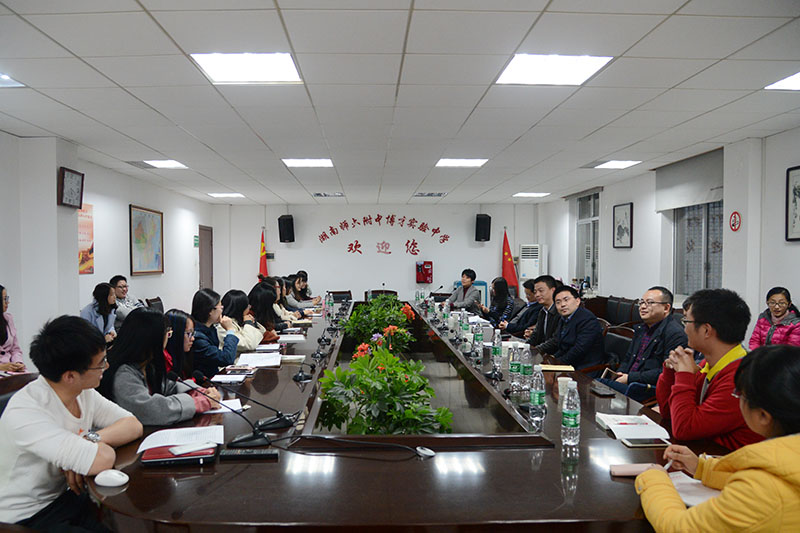 (通讯员 汤晓微 管接东)11月8日下午,我校五月天精品综合阁赴博才实验中学实习队实习成果汇报会在博才实验中学办公楼会议室召开。湖南师范大学五月天精品综合阁院长郑贤章、中文系主任吕双伟以及五月天精品综合阁老师徐朝红、曾绍皇、周敏到场指导实习工作并全程参与此次汇报会。博才实验中学校长苏建祥、教务处主任黄赛以及语文备课组组长陈艳老师也参加了此次会议并做出了精彩发言。