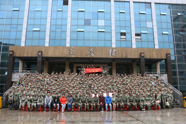 最后,我院全体教官带领新生进行最后一次整队,于至善楼前高喊文院口号并合影留念。