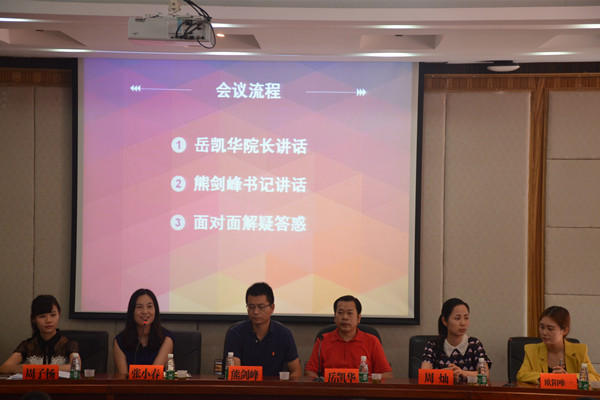 此次家长座谈会主要分为三个流程:岳凯华介绍我院的基本情况;熊剑峰介绍学生工作的相关情况;针对家长的问题进行面对面的解疑答惑。