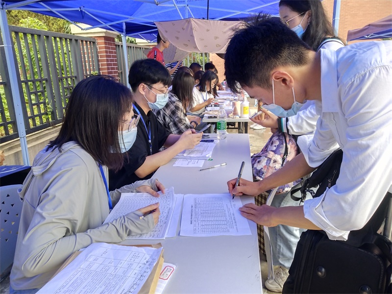新生在五舍广场报到点有序提交材料