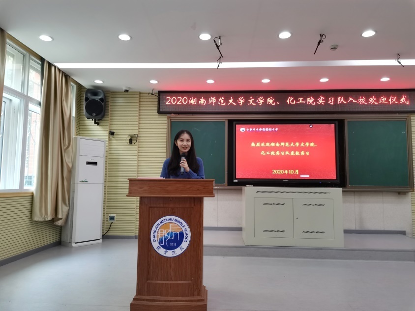 通讯员(熊颖军 罗雅静)10月12日上午,我院2017级实习队赴长郡梅溪湖中学参加入校欢迎仪式。欢迎仪式由长梅中学教务办蒋慧玲老师主持,长郡梅溪湖中学校长刘欣、教务处主任何永清、中学各学科老师代表、五月天精品综合阁实习队领队老师黄乐平、化工学院领队老师张超以及实习学生参加了此次欢迎仪式。