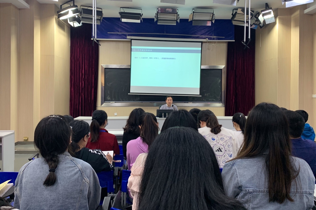 滕小伟代表广益实验中学对我院实习队表示欢迎。他介绍了广益实验中学的历史沿革和办学情况,并对实习工作提出了建议和期望。他鼓励全体队员要积极转变角色,在教师的工作岗位上要把握好教师立德树人的要求,投身实践,关爱学生,注意举止修养。最后,滕小伟祝愿实习工作取得圆满成功。