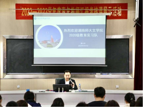 副校长滕小伟对实习队的到来表示欢迎,并向实习队介绍长沙市华益中学的基本情况。正值惊蛰节气,滕小伟结合惊蛰节气特点对实习生提出要求、传授经验,希望实习生们“惊醒蛰伏的灵魂”,“用一个灵魂唤醒另一个灵魂”。滕小伟强调,希望实习生们及时转换身份角色,认识到从学生到老师的身份变化,身正为师,学高为范,抓住机会,谦虚求教。滕小伟也向各位教育教学指导老师提出要求,指导老师须言传身教、尽心尽力、倾囊相授,做好各实习生教育教学路上的开路人、指路人、引路人。