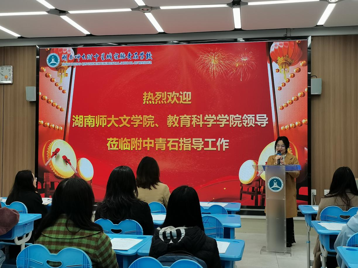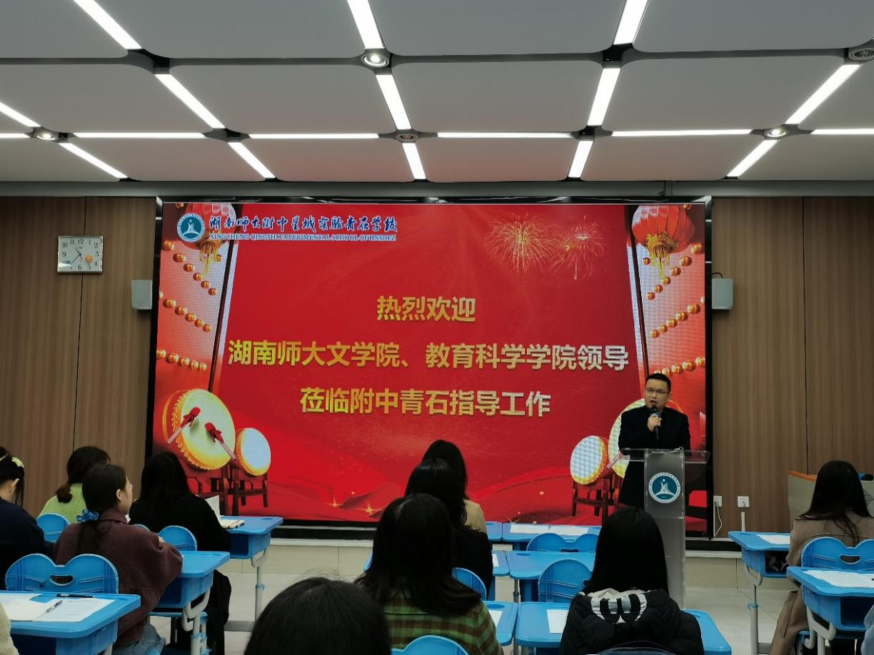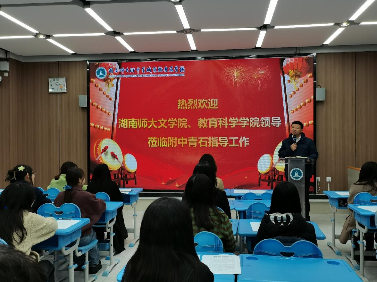 副院长吕双伟对师大附中星城实验青石学校的支持和保障工作表示感谢,并对实习队表达了殷切的期许,希望各位实习生能够把握好宝贵的实习机会,在教学实践中结合自己的专业知识,发挥自身优势,全力以赴,做好实习工作。吕院长还期待双方能够在语文教育、教师招聘和双向互聘等方面加强交流和合作。