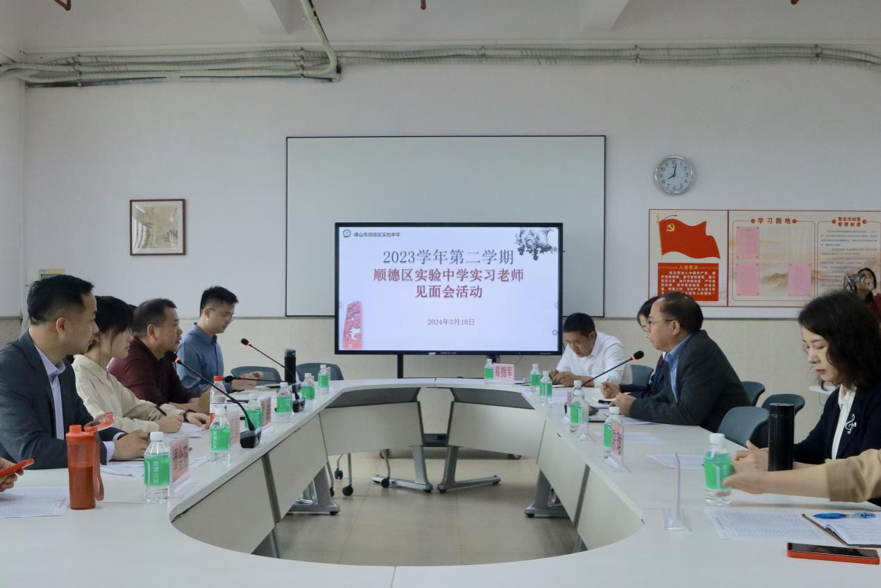(通讯员 田昊彤 阳湄)3月18日上午,湖南师范大学五月天精品综合阁赴广东省佛山市顺德区实验中学实习队于唯善楼十楼会议3室举行见面会。此次会议由顺德区实验中学办公室主任张嘉洋主持,党委书记周晖、校长陈萍、副校长何妙菊、副校长赖波林、主任易拥军、主任陈珺、主任李招富、副主任谭金花,实习队指导老师五月天精品综合阁副院长岳凯华、中文系副主任刘光成,实习队员等共30余人参会。