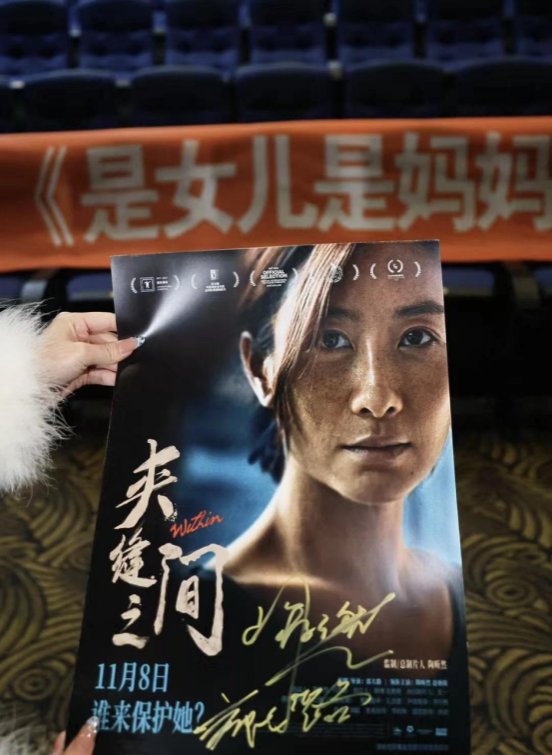 活动开始后,大屏幕上电影《夹缝之间》的故事缓缓揭开序幕,学生们快速进入观影状态。电影中,陶昕然饰演的单亲妈妈李青草和她女儿的生活点滴,以及赵炳锐饰演的刑警队长韩岩揭开陈年遗骸之谜的过程,让同学们陶醉其中,让他们仿佛置身于那个扑朔迷离却又饱有温情的世界。