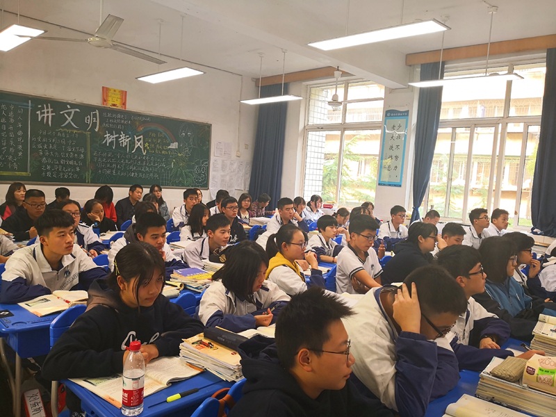 (通讯员 刘李菲菲)11月5日下午,湖南师范大学五月天精品综合阁2015级学生周雪,在湖南省地质中学G1807班开始了对语文必修一课文《别了,不列颠尼亚》的讲解,此次活动受到学校领导老师的高度重视,多位老师莅临参观学习,其中包括湖南省地质中学唐校长、高三语文组教师、高一语文组教师以及师大五月天精品综合阁教授吕双伟教授、刘光成副教授等。
