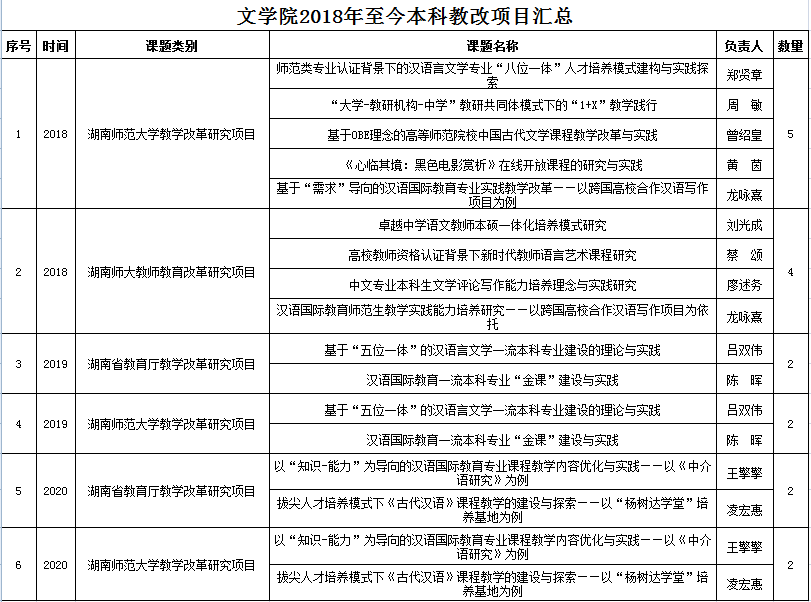 2010年—2018年教改项目列表