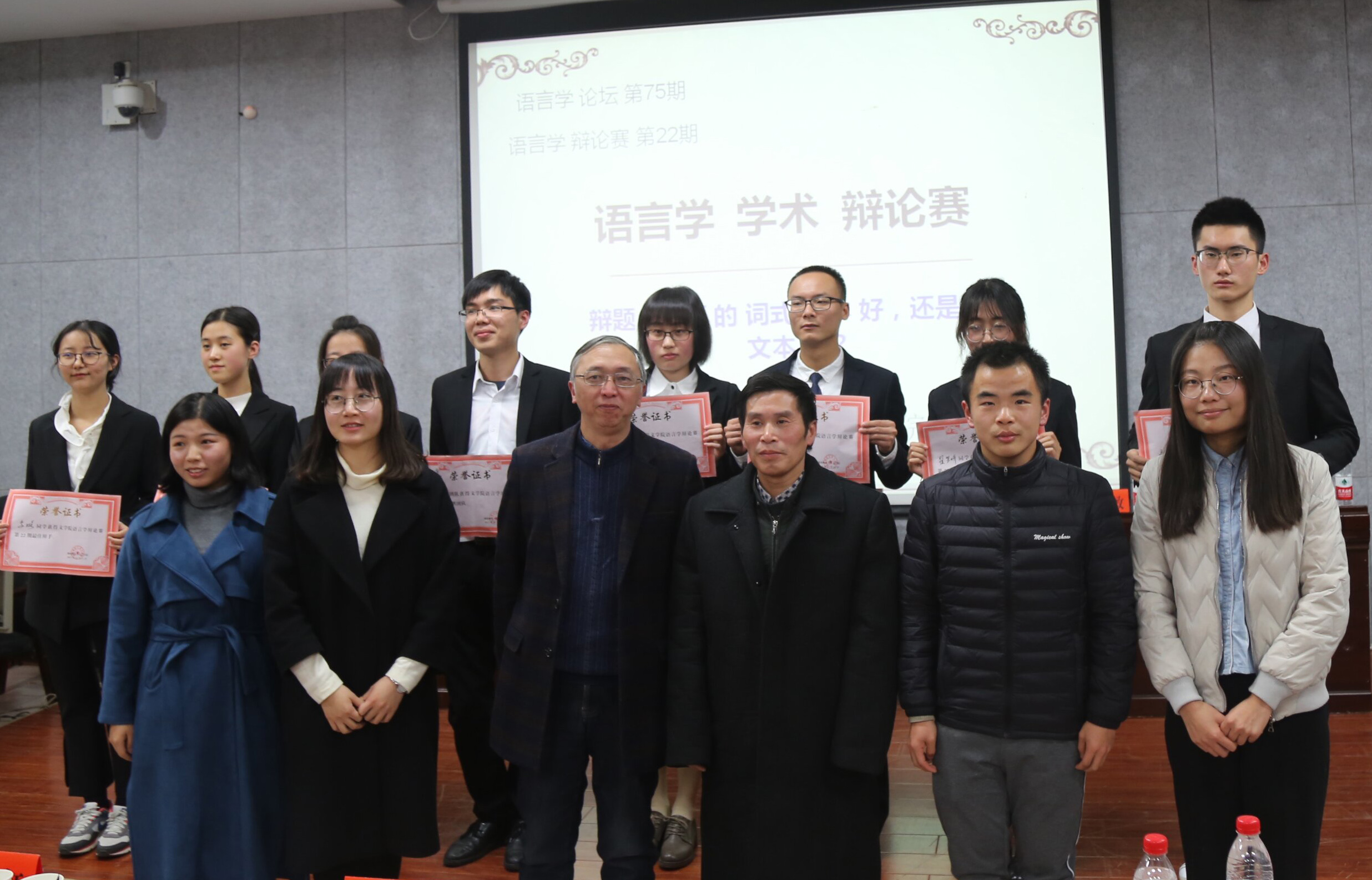 (通讯员王雪纯,柯秀清,何俊仪)2017年11月21日晚,五月天精品综合阁第22期语言学辩论赛在217教室举行,现场座无虚席,气氛热烈。博士生导师彭泽润教授、曾常红副教授、博士生雷梓燚等出席并担任评委。