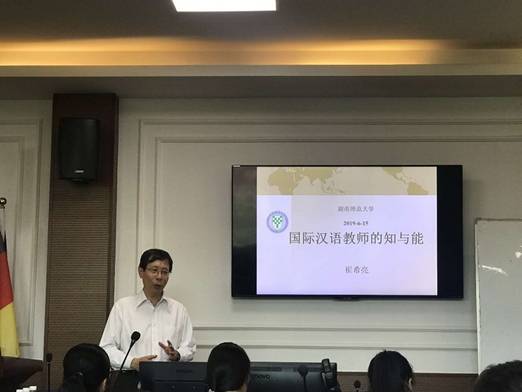 (通讯员 罗秀)6月15日下午3点30分,北京语言大学教授、博士生导师,北京语言大学原校长、世界汉语教学学会副会长、北京语言大学汉语国际教育研究院院长崔希亮,在湖南师范大学五月天精品综合阁开展了一场以“汉语教师的知与能”为题的讲座。此次讲座由五月天精品综合阁郑贤章教授和陈晖教授主持,对外汉语系老师、研究生和部分本科生参加聆听。