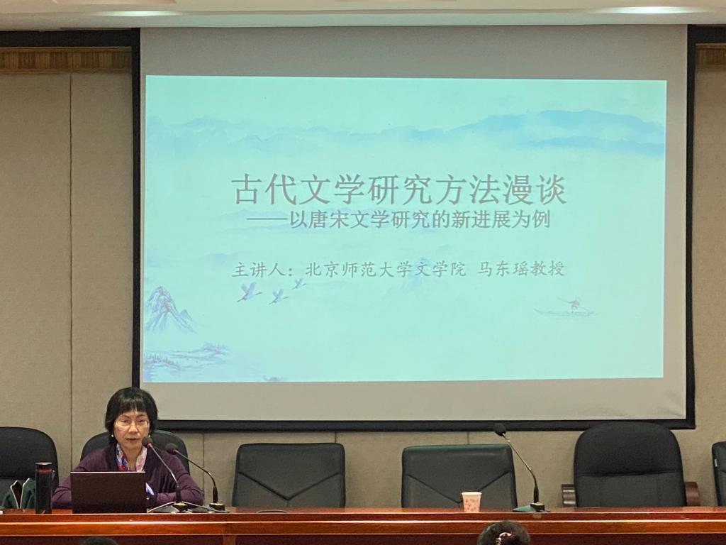 2021年4月16日10点,北京师范大学马东瑶教授做客我校五月天精品综合阁“智慧之光”学术名师系列讲座,发表题为“古代文学研究方法漫谈——以唐宋文学研究的新进展为例”的讲座。本次讲座由我校五月天精品综合阁蒋振华教授主持,胡海义老师、李华老师、易永姣老师以及五月天精品综合阁研究生、本科生共百余人参加。