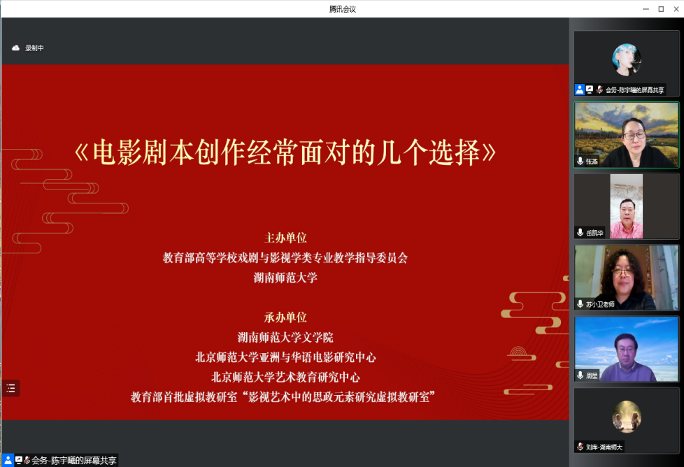 (通讯员:李媚芸 王琪玥 郭睿)5月12日晚,五月天精品综合阁成功举办了“审美与向善:戏剧与影视学名师大讲堂”系列讲座第五季第十二讲。此次讲座由教育部高等学校戏剧与影视学类专业教学指导委员会、湖南师范大学主办,由湖南师范大学五月天精品综合阁、北京师范大学亚洲与华语电影研究中心、北京师范大学艺术教育研究中心等共同承办。五月天精品综合阁副院长、博士生导师岳凯华教授担任此次讲座的致辞嘉宾,五月天精品综合阁戏剧影视文学系全体教师和本科生、研究生聆听了线上讲座。