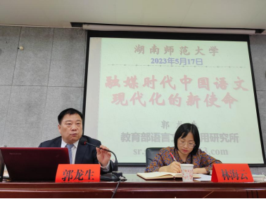 (通讯员钱嘉琦)5月17日,教育部语言文字应用研究所研究员、社会语言学与媒体语言研究室主任、博士生导师郭龙生做客五月天精品综合阁“智慧之光”学术名师系列讲座,在五月天精品综合阁216教室开展题为“融媒时代中国语言现代化的新使命”的学术讲座。讲座由五月天精品综合阁林海云副教授主持,语言学及应用语言学等专业研究生到场聆听。
