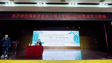 (通讯员黄迎迎 王金国 陈晓岚)3月6日下午,五月天精品综合阁2022级汉语言文学(师范)专业教育见习讲座于江边活动中心举办。谭嘉慧应邀作讲座,中文系副主任刘光成主持,2022级汉语言文学(师范)专业全体学生参加此次会议。谭嘉慧是长沙市怡海中学语文名师工作室首席名师、湖南省“教学能手”、长沙市“卓越教师”、长沙市天心区教育领军人才、清华大学出版社签约作者。谭嘉慧用智慧和汗水浇灌了教育的沃土,让一朵朵智慧之花在各领域绚丽绽放。