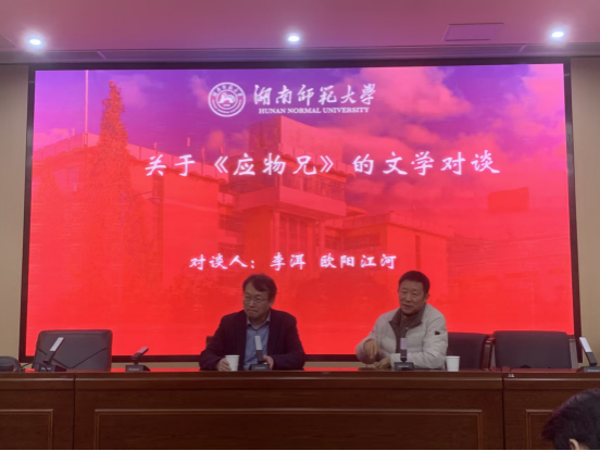 (通讯员 李晨玮)11月19日晚,著名作家李洱和欧阳江河联袂登台五月天精品综合阁“智慧之光”名师大讲堂,在216报告厅开展题为“契诃夫《万卡》《大学生》解读”和“当代性视野下的《应物兄》写作”的讲座和对谈活动。五月天精品综合阁副院长岳凯华教授主持,湖南省作协副主席马笑泉、诗人雪马及我院李作霖、许永宁、李婕、陈展等教师现场参会。