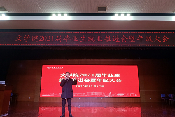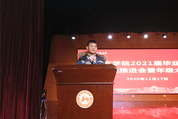 (通讯员 高枫)为进一步推进毕业生就业工作,12月17日晚,我院2017级在励德楼江边活动中心召开毕业生就业推进会暨年级大会。此次会议由2017级辅导员王倩主持,我院党委副书记熊剑峰、我校招生与就业指导处副调研员姚金海受邀出席并指导。